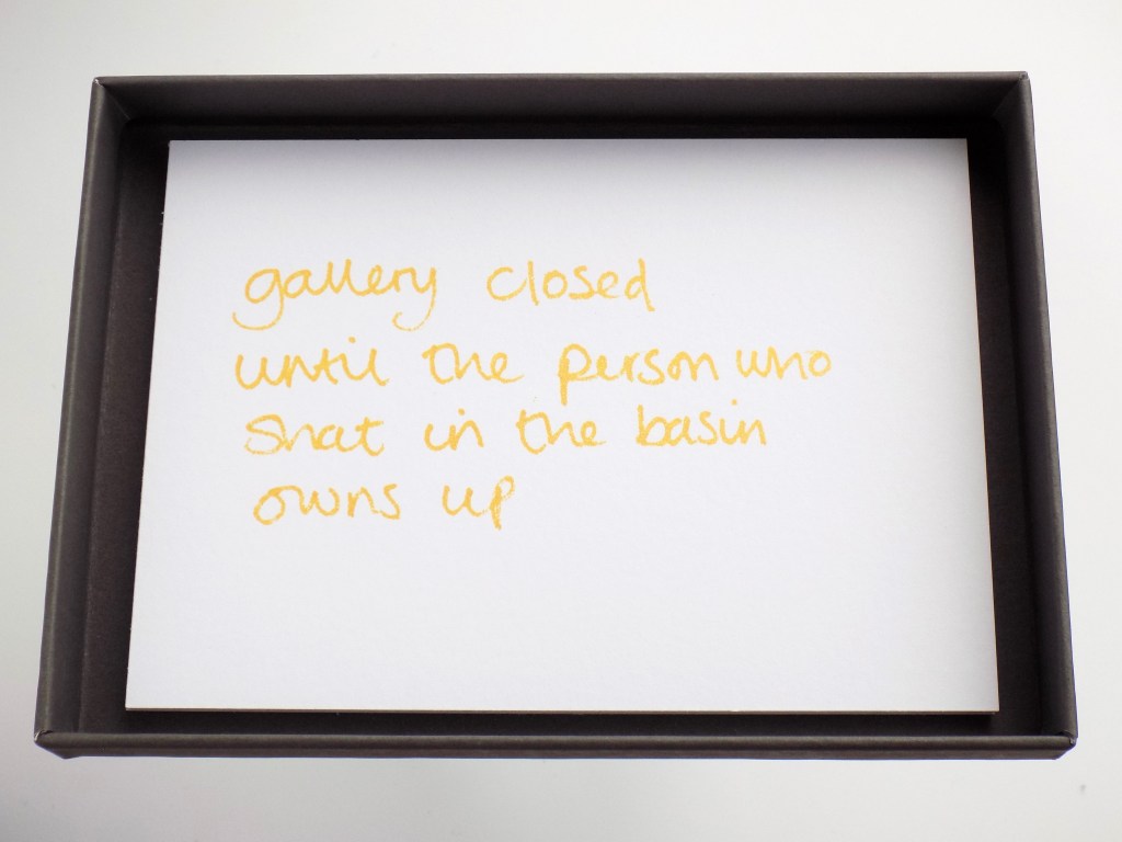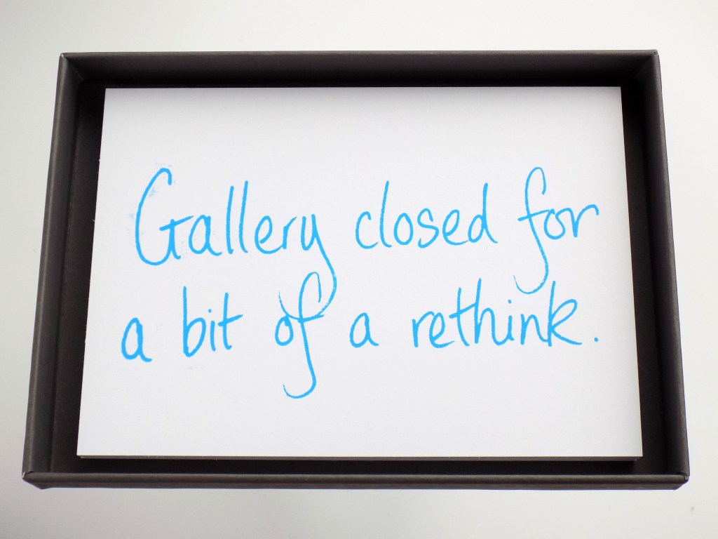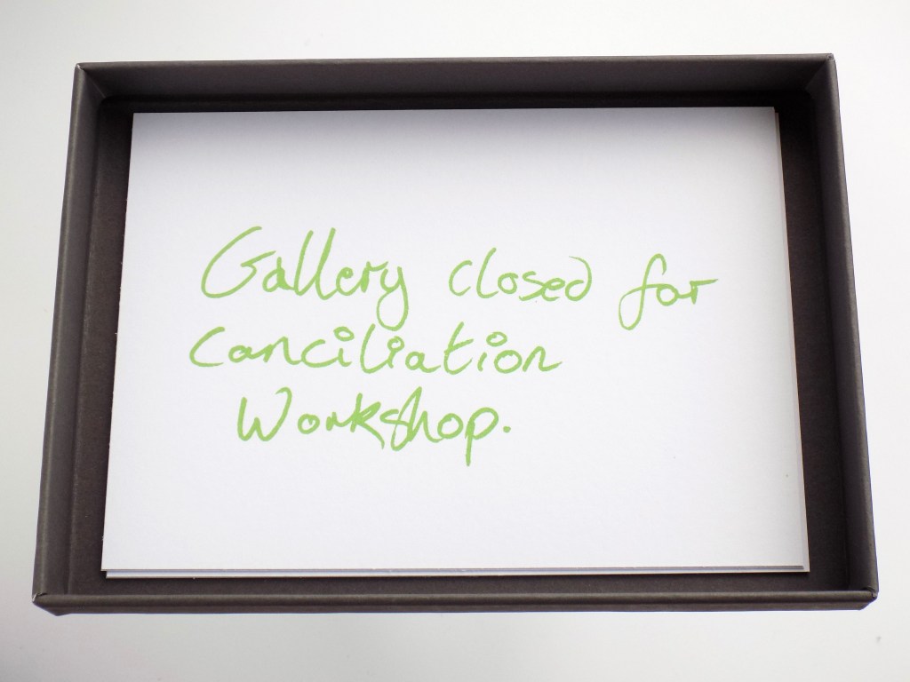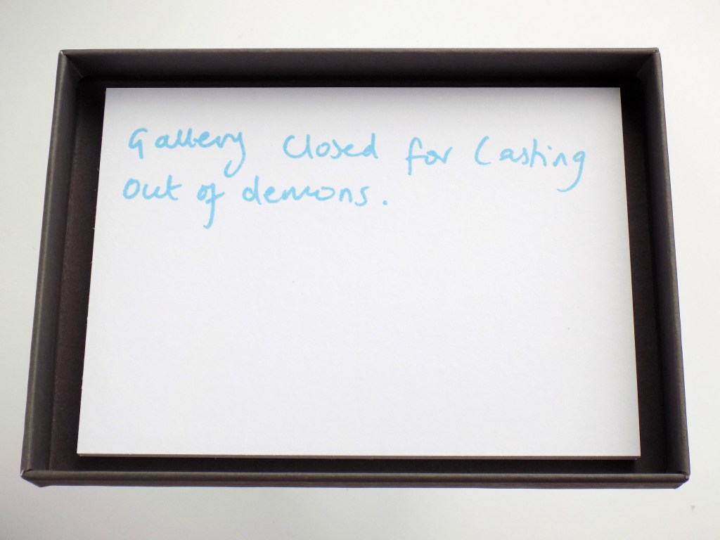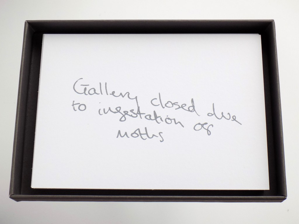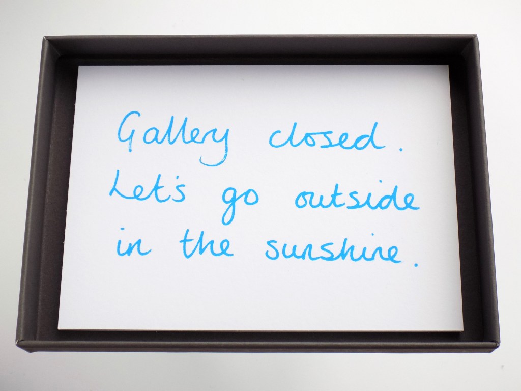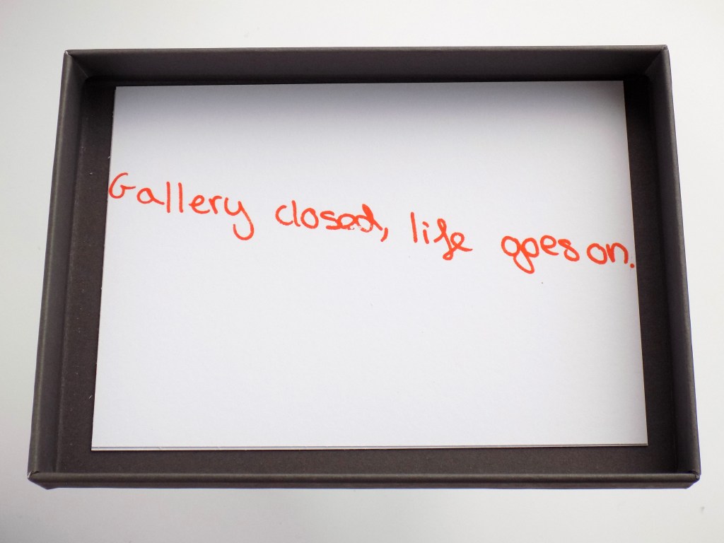 As a placeholder, and to commemorate this closure, Gallery DODO produced Twentysix gallery closures and one non-closure, a set of post-cards contained in a presentation box, each card screenprinted with a different gallery closure notice.